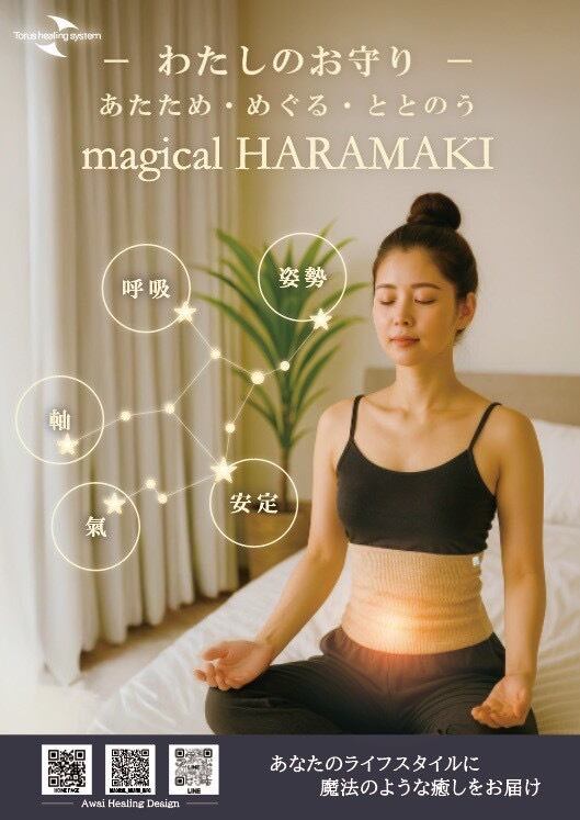 きちんと丹田に力が入り、バランスを整え、深い腹式呼吸へと導いてくれるマジカルなハラマキです♡